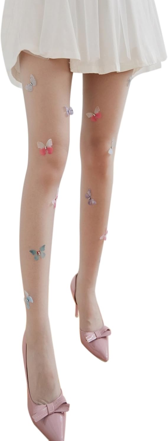 Luntus 女性女の子用ロリータタイツストッキングパンティーストッキングデザイン可愛い蝶タトゥーパーティータイツ ナイロン製ストッキング グレー ストッキング 通販 Amazon