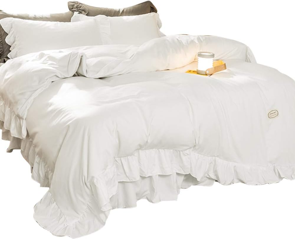 Amazon 綿花世界 ホワイトベッドカバー 可愛いラッフルフリル掛け布団カバーセット 3点セット 寝具カバーセット オンライン通販
